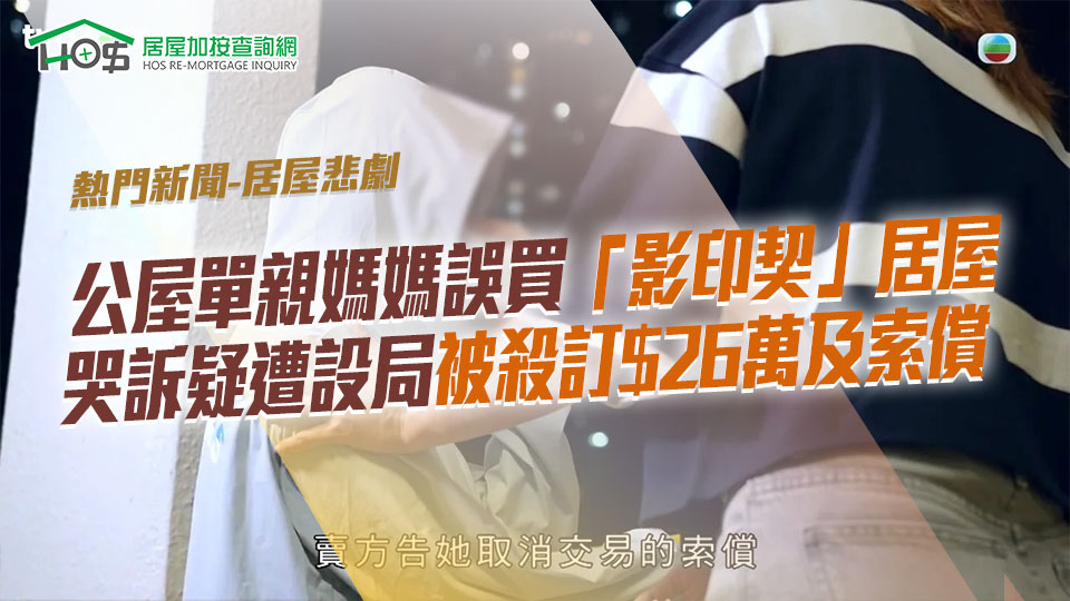【Now.com】有單親媽媽投訴指,她計劃以綠表購入市值270萬元的二手居屋,在支付26萬元訂金後,才得知單位樓契是「影印契」(核證副本,俗稱「無樓契約」)無法按揭。雖然她即時要求取消交易,但因律師樓延遲交出正式買賣合約副本,導致她錯過7天「踢契」期限,無法取消交易之餘,還被賣方索償。 Kathy質疑遭地產經紀、律師行等各方設局「殺訂」,哭訴「我本身都係住公屋,亦都好辛苦儲錢……但到最後原來係一次過無晒」。……查看更多